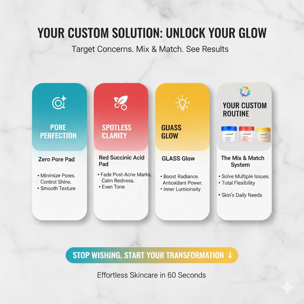 No. You Mix & Match based on your skin's daily needs (e.g., Pore Pad in AM, Brightening/Spot Pad in PM).